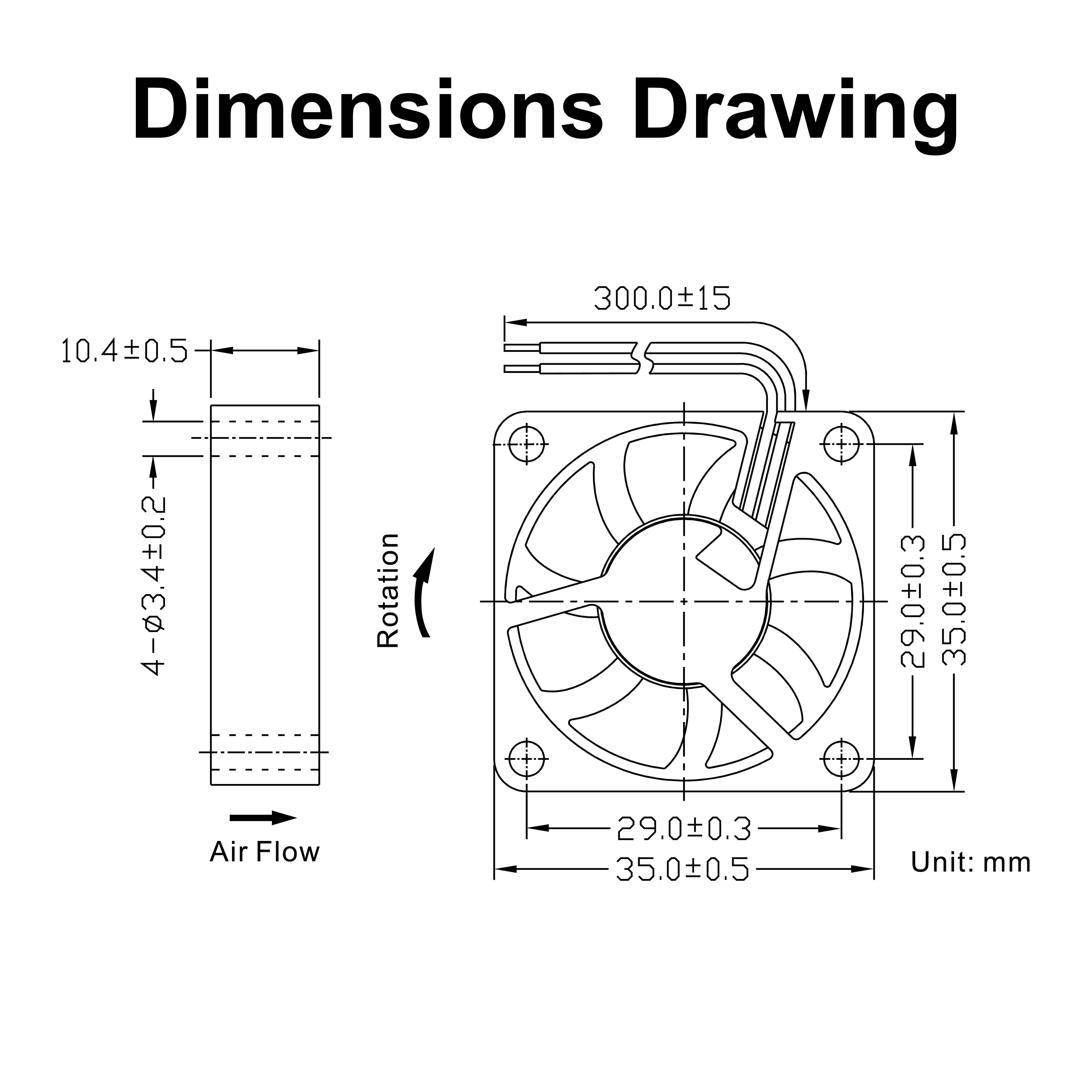 • Frame and Impeller:Thermal Plastic , UL 94V-0