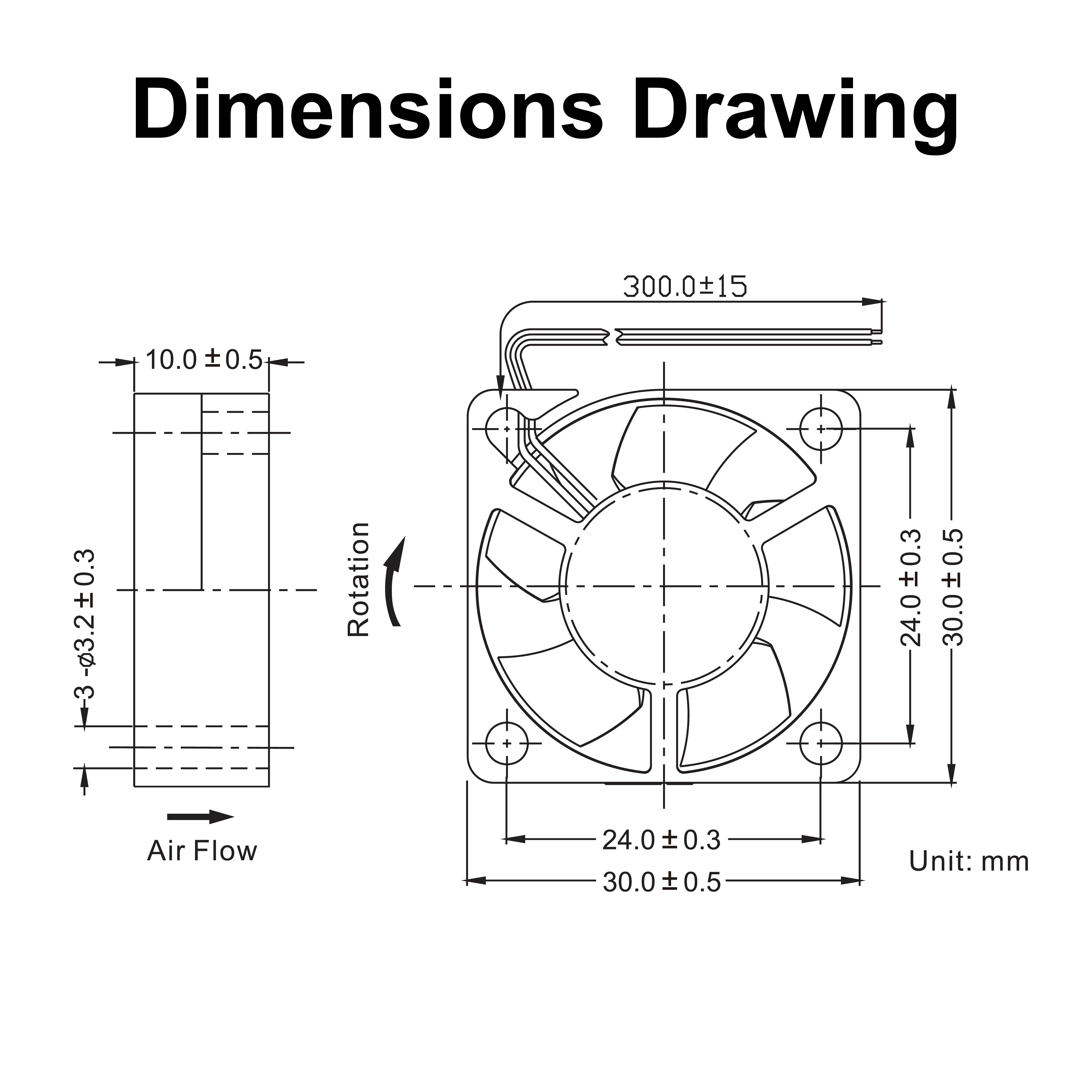 • Frame and Impeller:Thermal Plastic , UL 94V-0