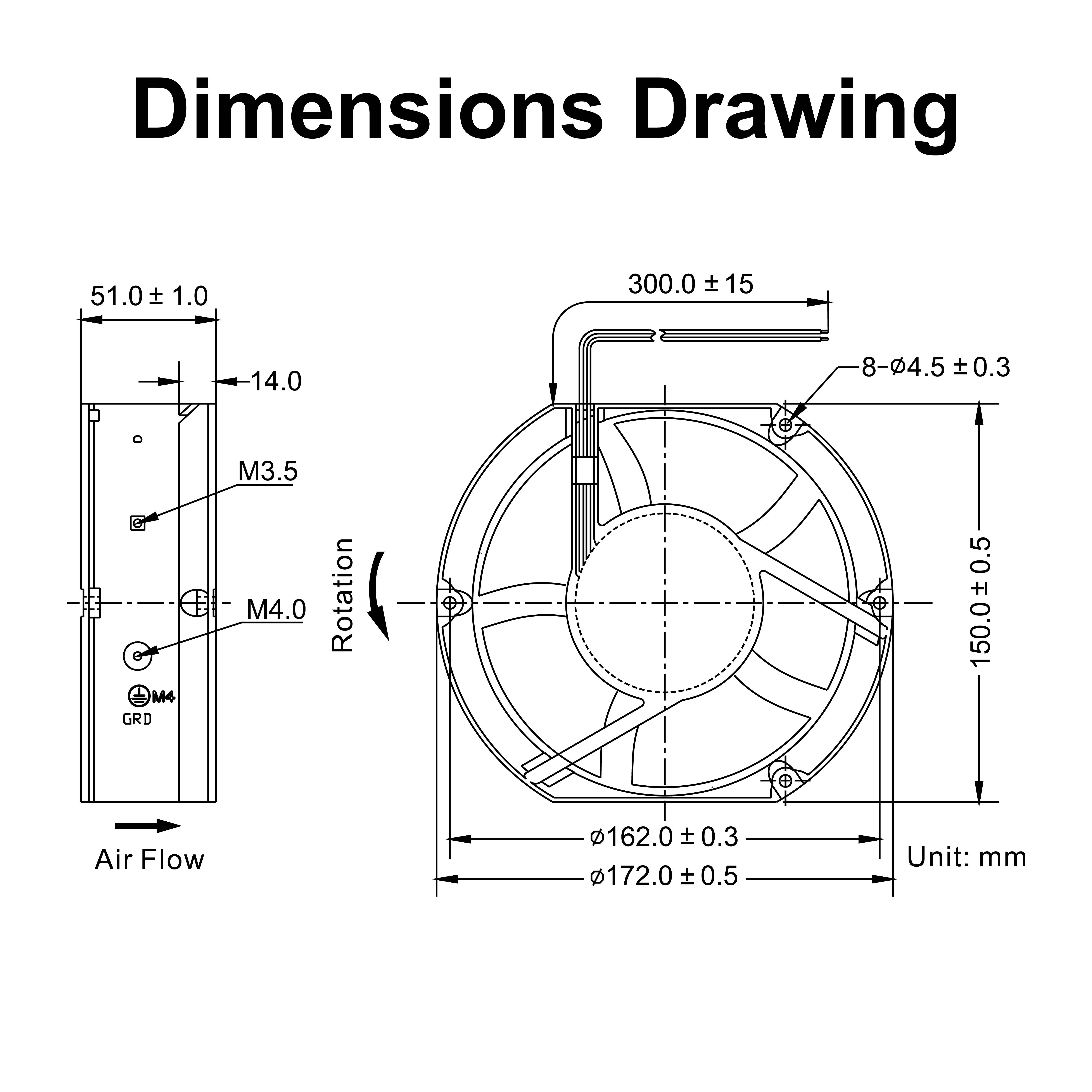 | mm | VDC | VDC | A | RPM | CFM | mmH₂O | dBA | g | FG | RD | TC | PWM |