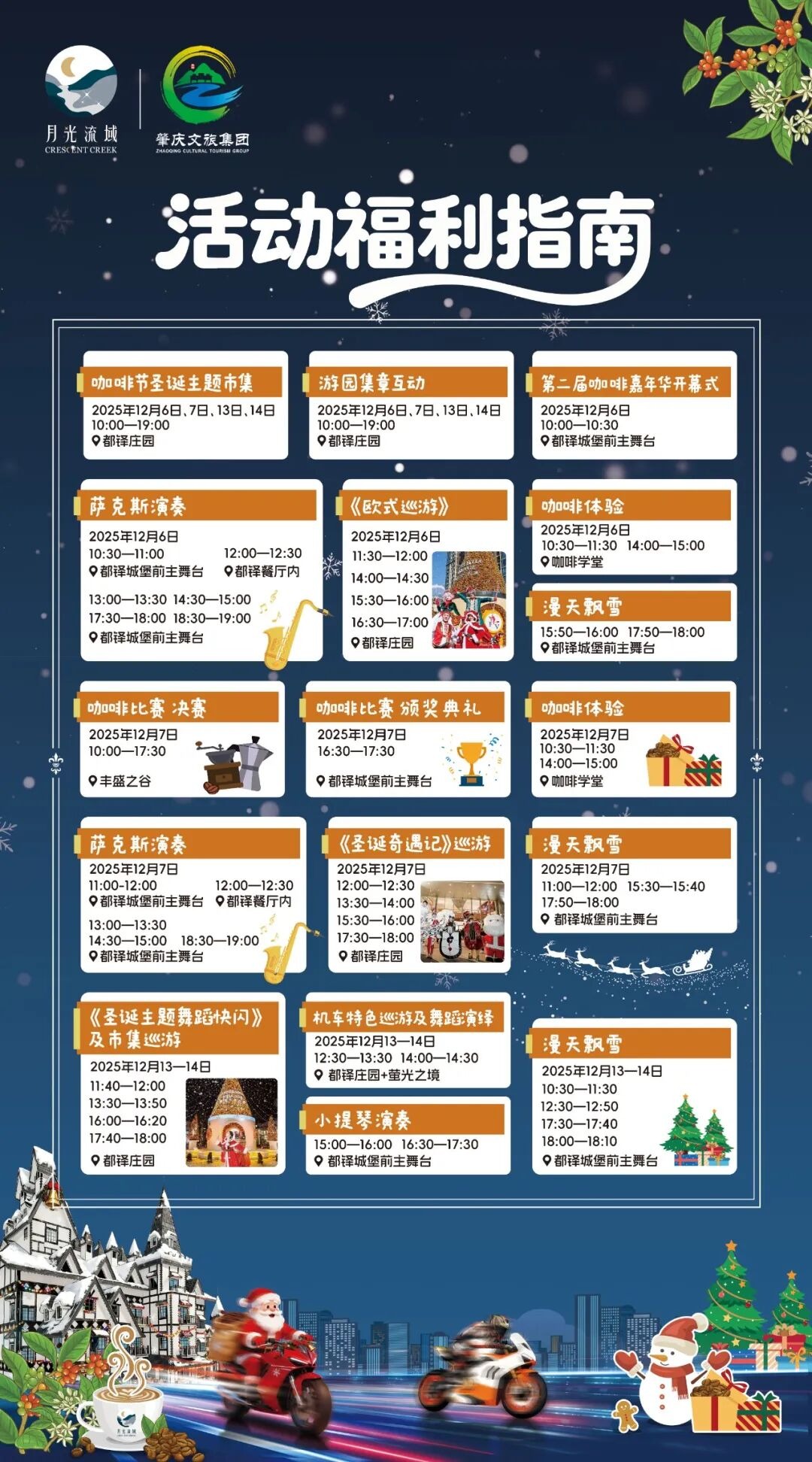 咖啡香再度飄散全城!大家期待已久的「肇慶·月光流域第二屆咖啡嘉年華」終於盛大回歸啦!今年活動更精彩,包含:聖誕主題咖啡市集、園區集章互動、薩克斯風演奏、咖啡大賽決賽、機車特色巡遊、舞蹈演繹……各種亮點都等你來現場親自體驗,這還只是精彩的開端! 為了讓你輕鬆赴約、不錯過任何打卡點,我們特別準備了這份「超完整攻略&逛展指南」。快收藏起來,照著走就能一路解鎖最完美的咖啡之旅!