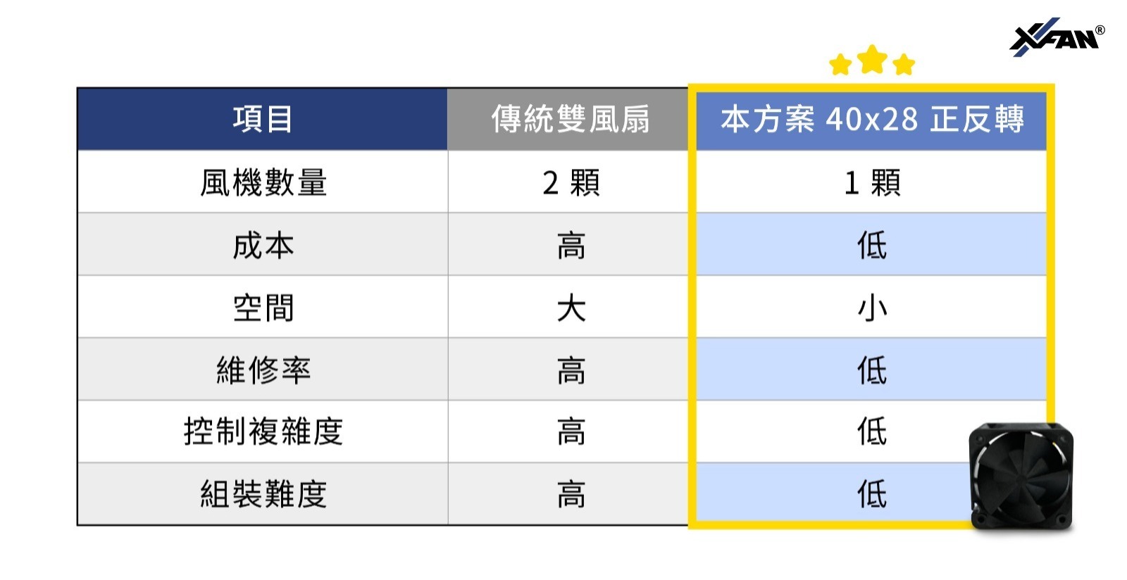 ▶ 本方案選用 40×40×28mm 薄型風扇,具備以下優勢: