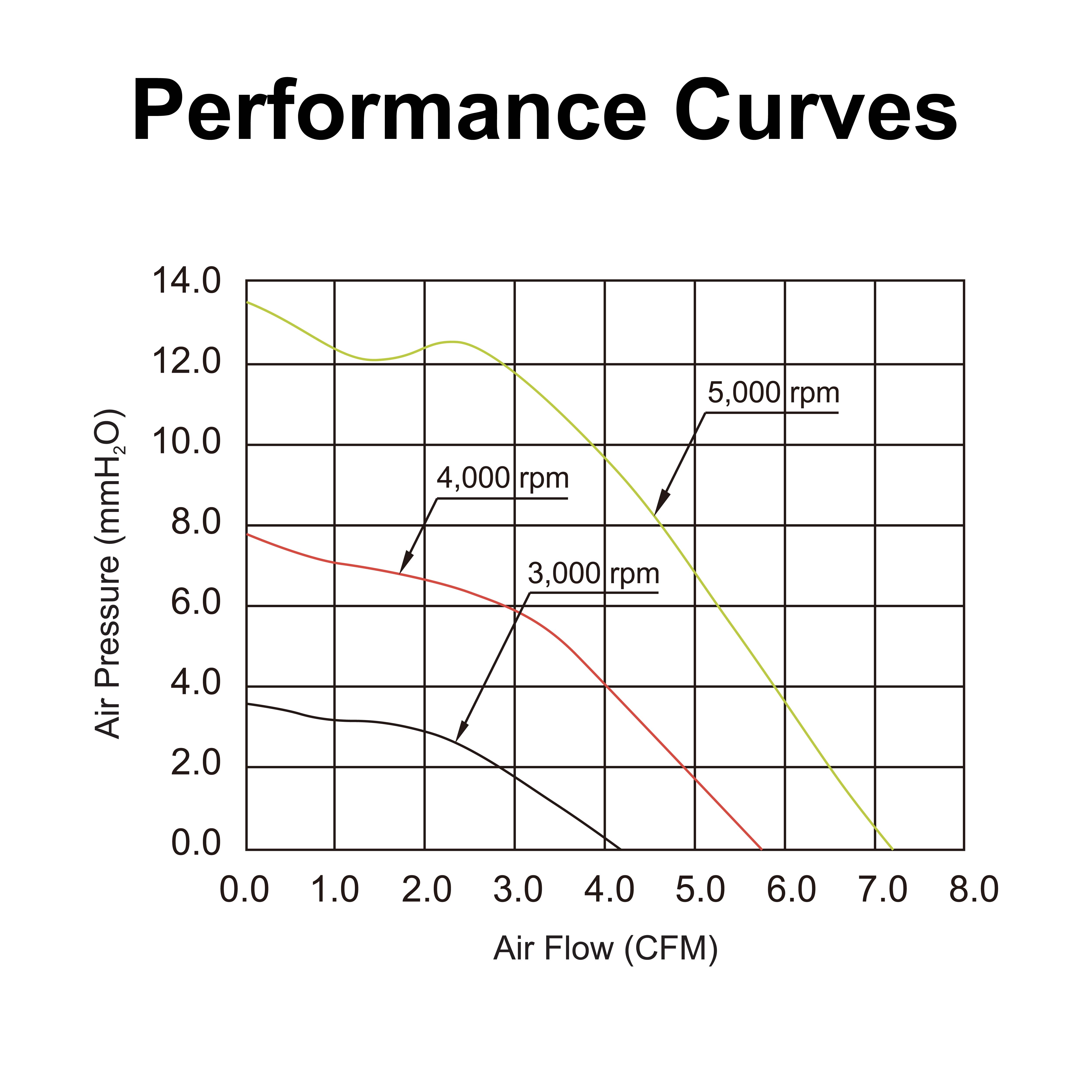 | mm | VDC | VDC | A | RPM | CFM | mmH₂O | dBA | g | FG | RD | TC | PWM |