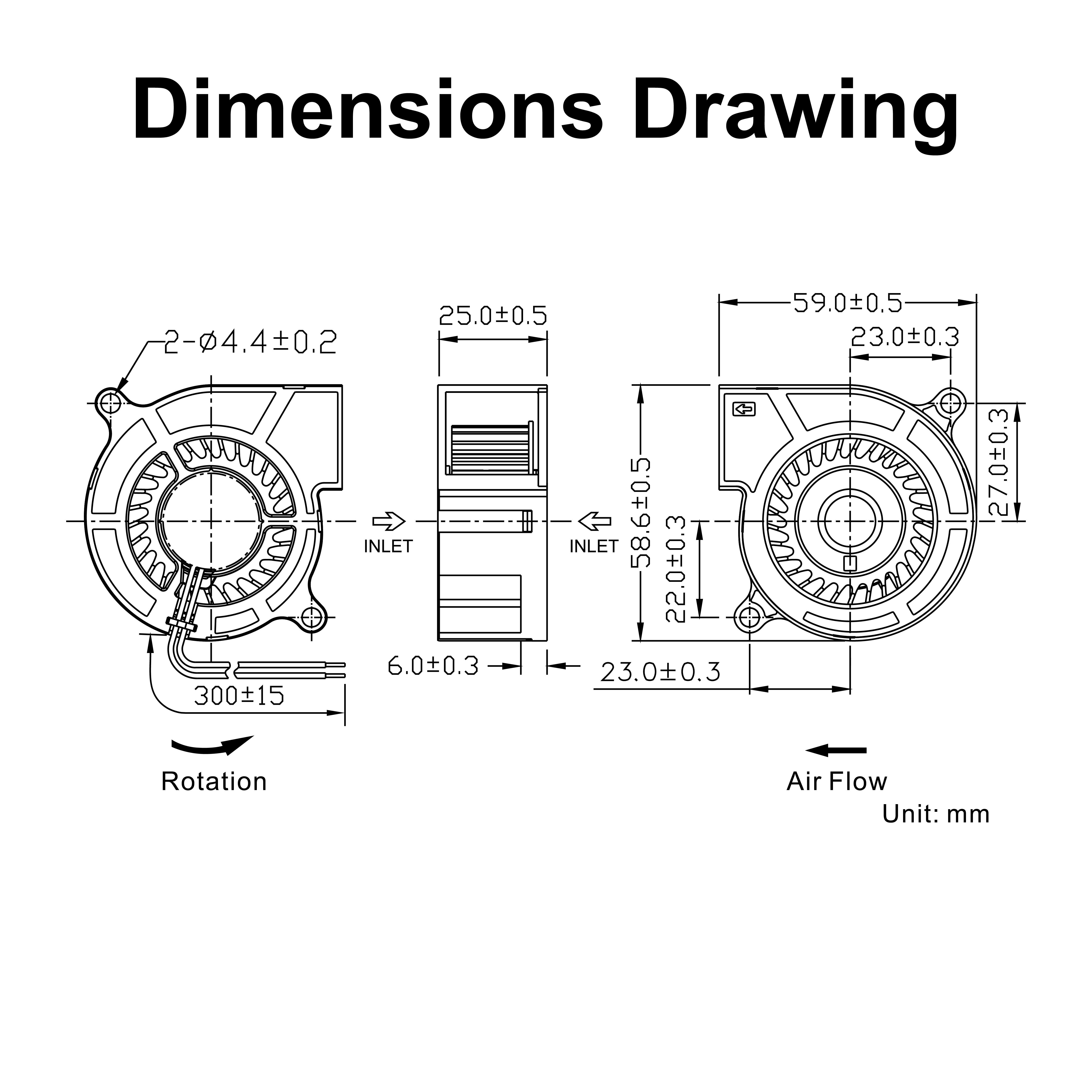 • Frame and Impeller:Thermal Plastic , UL 94V-0