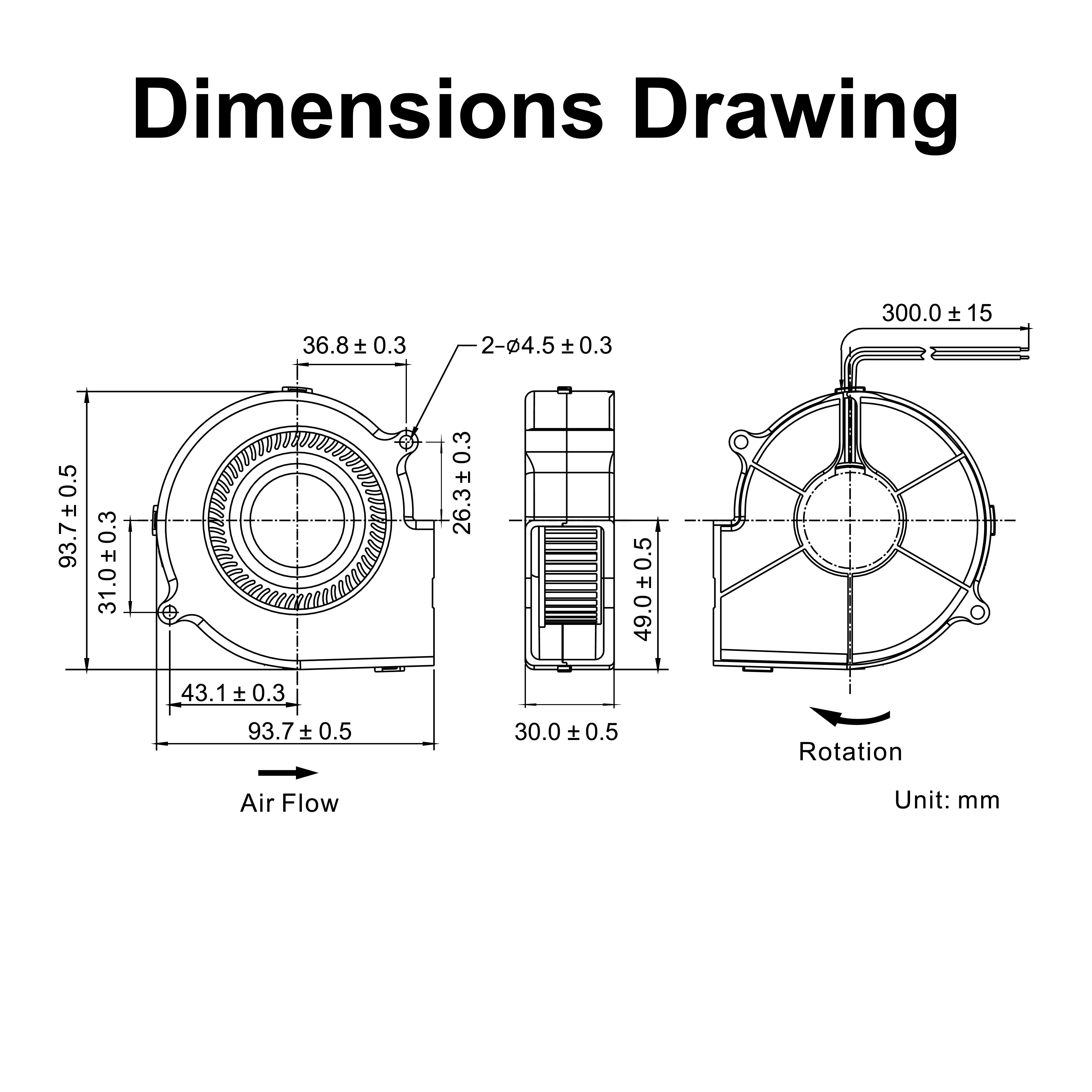 • Frame and Impeller:Thermal Plastic , UL 94V-0
