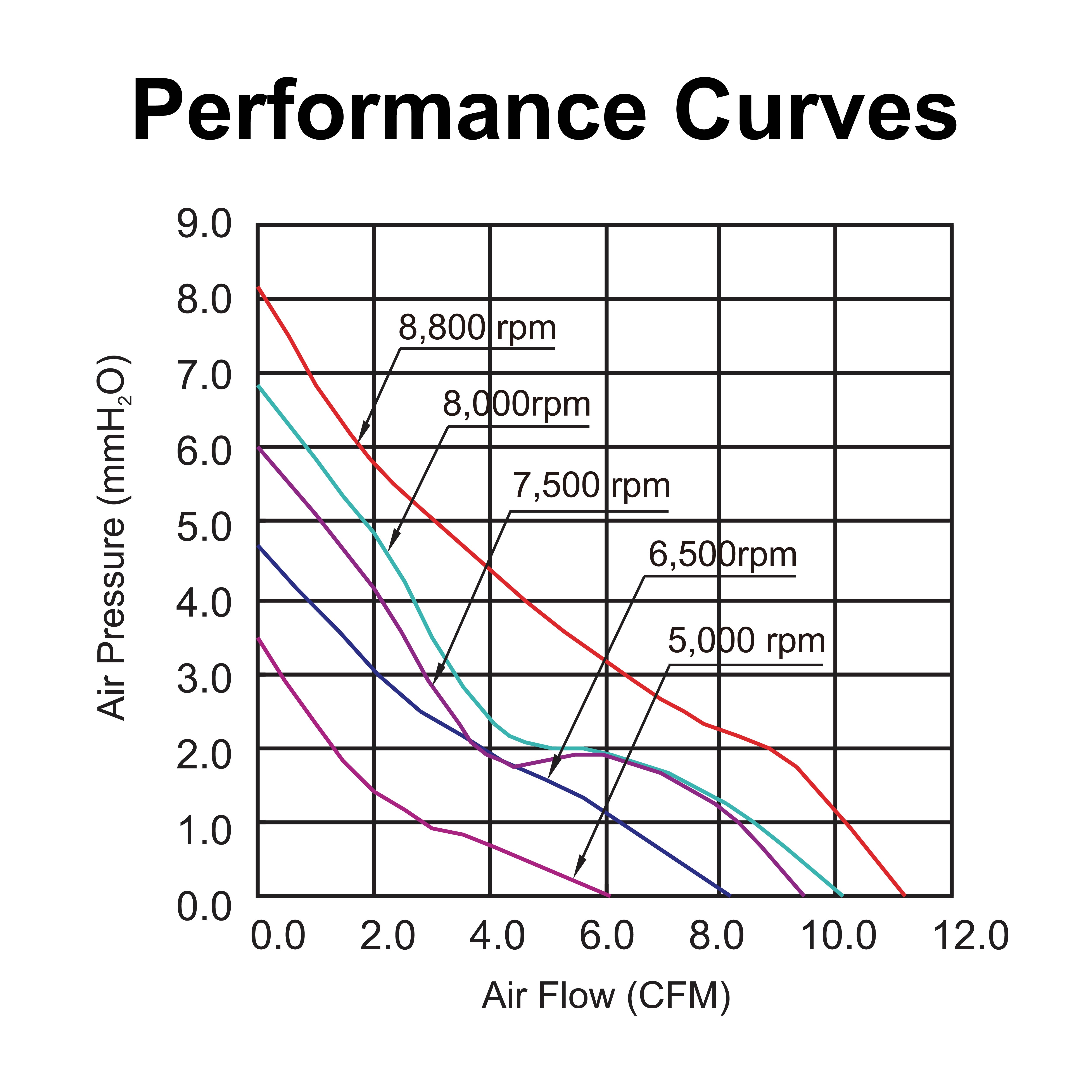 | mm | VDC | VDC | A | RPM | CFM | mmH₂O | dBA | g | FG | RD | TC | PWM |
