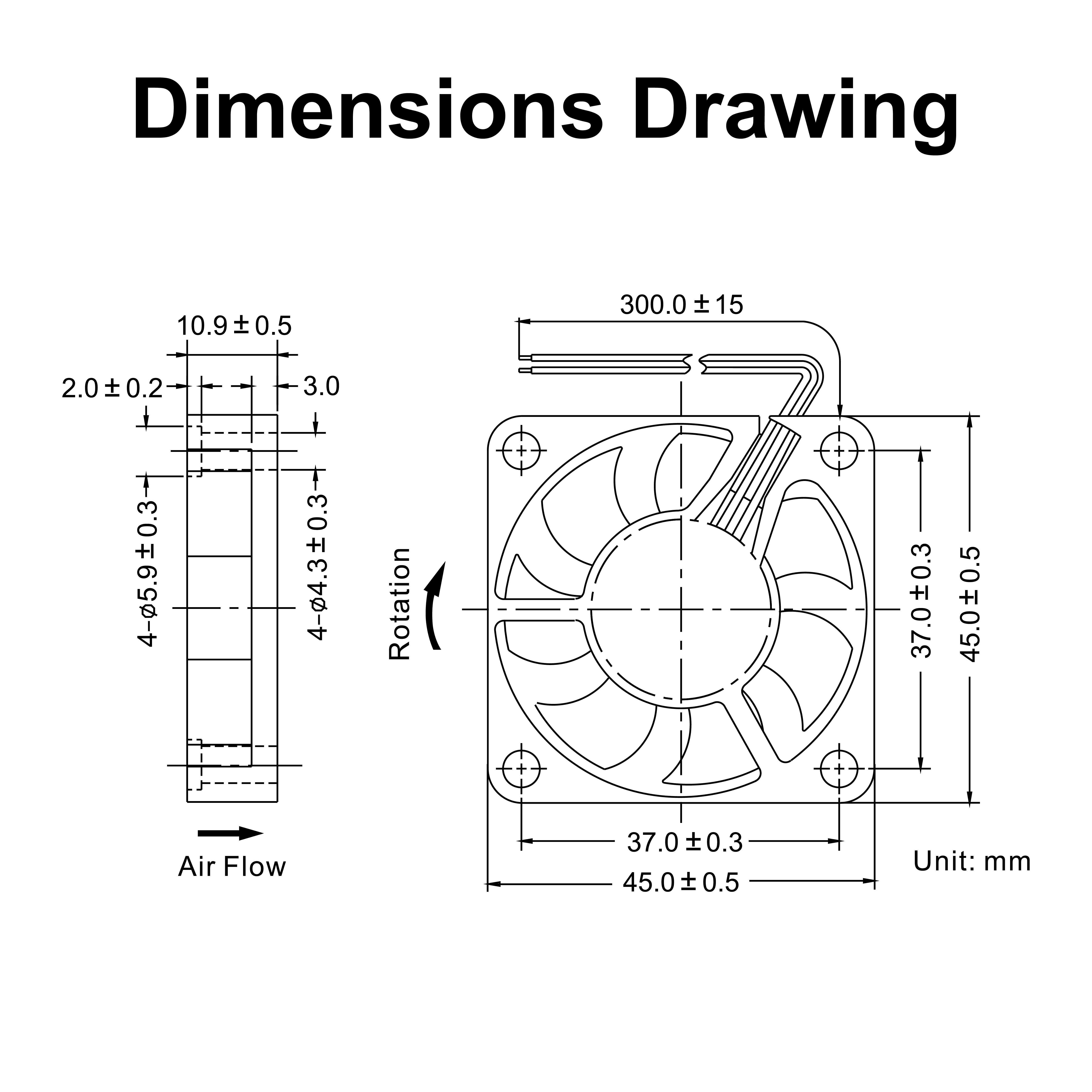 • Frame and Impeller:Thermal Plastic , UL 94V-0
