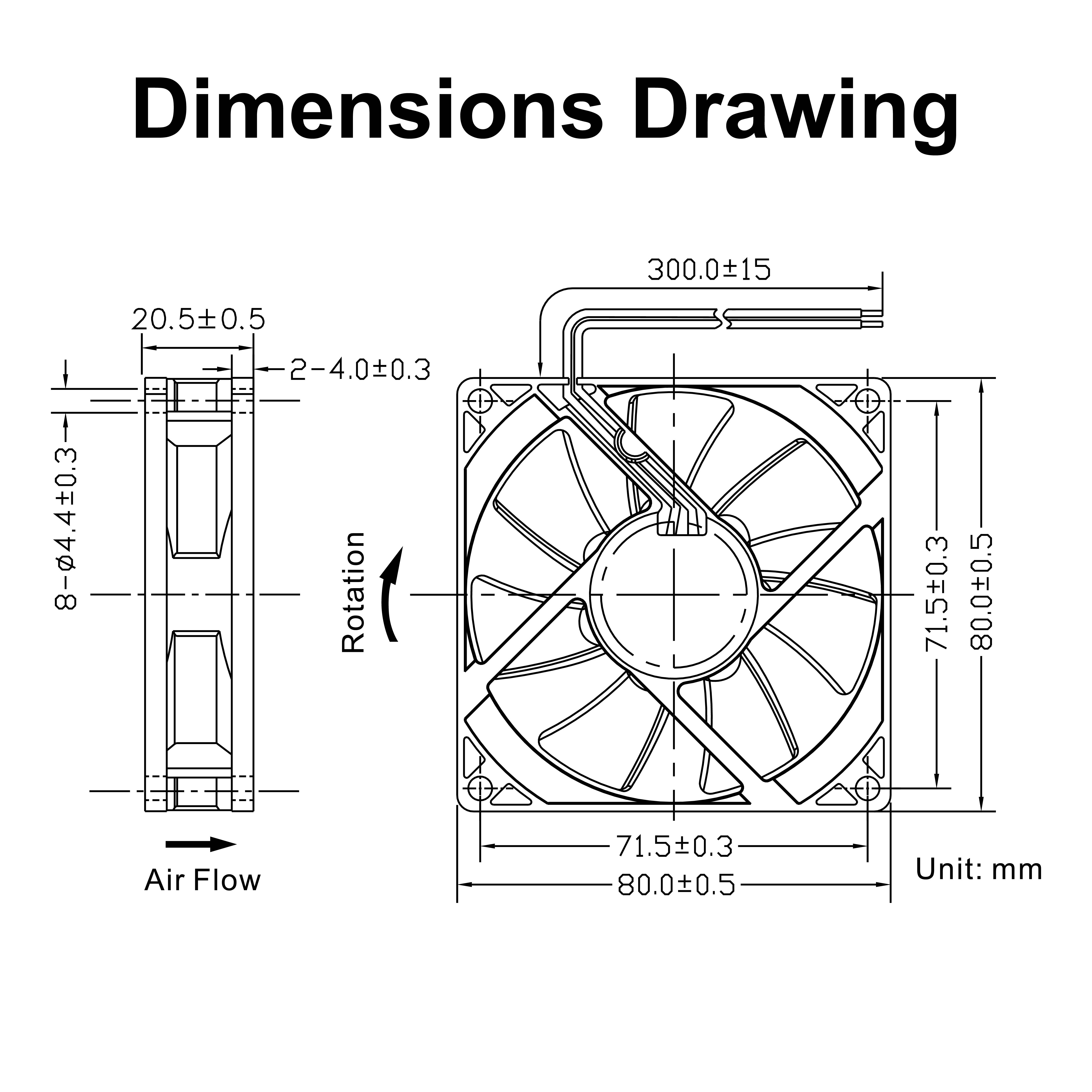 • Frame and Impeller:Thermal Plastic , UL 94V-0