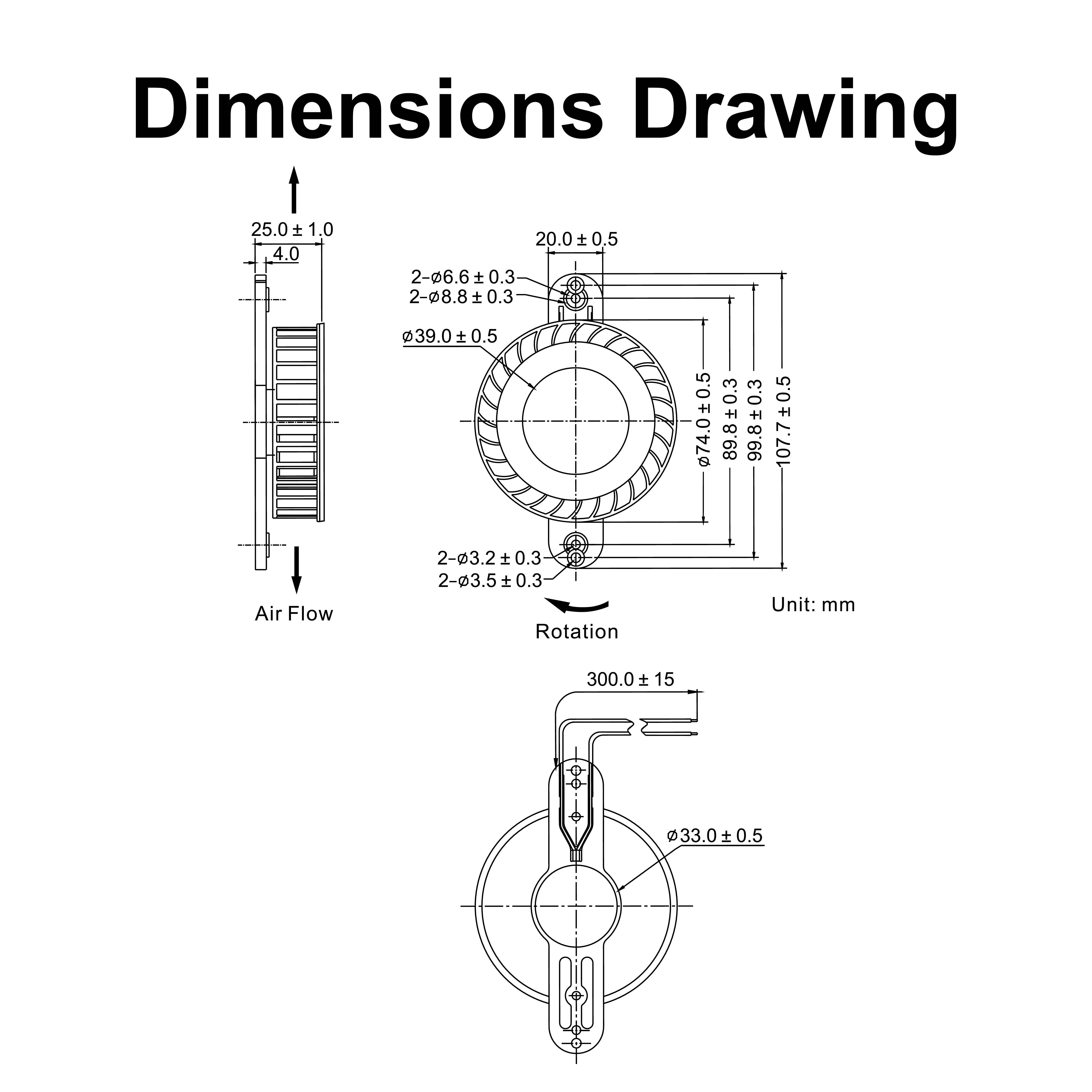 • Frame and Impeller:Thermal Plastic , UL 94V-0