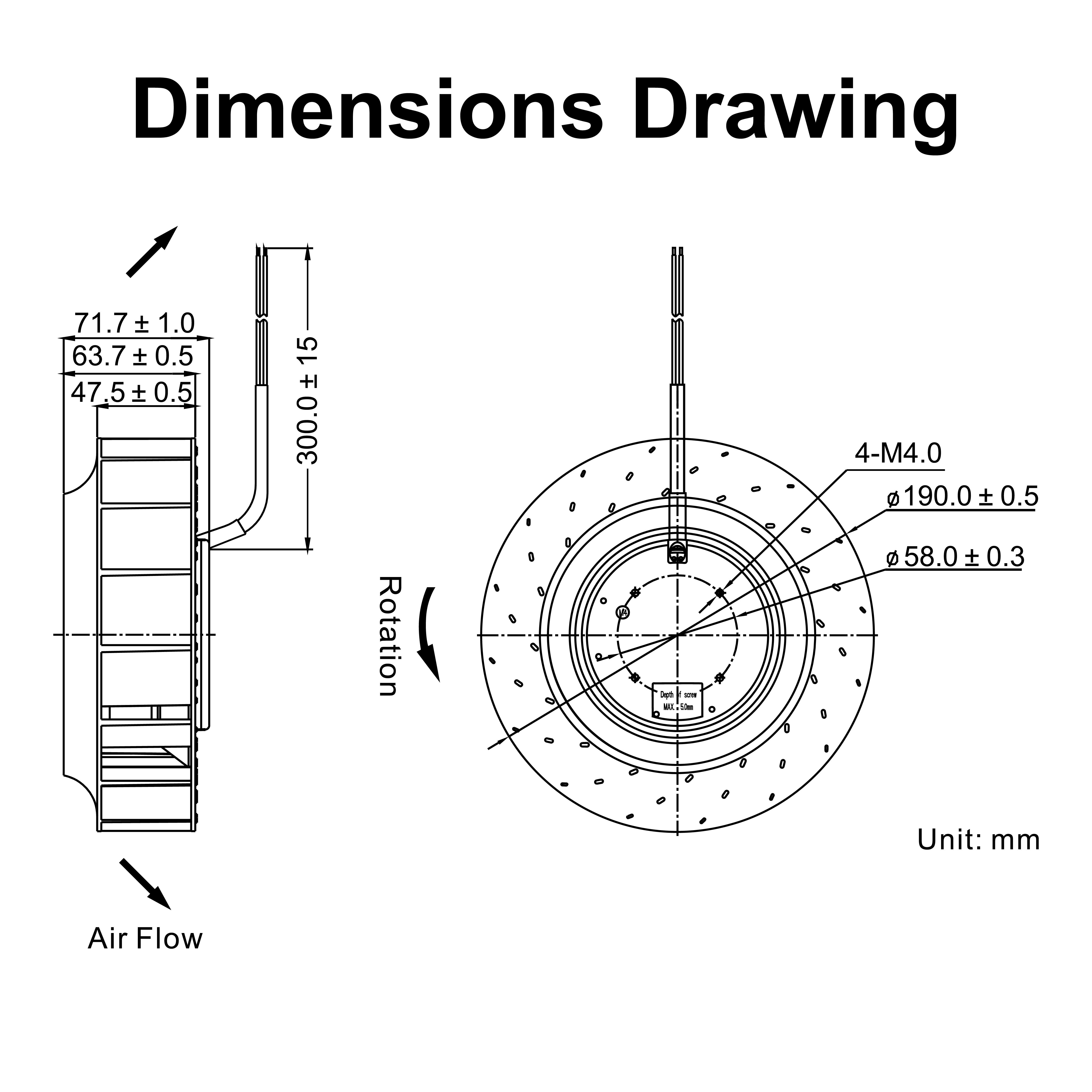 | mm | VDC | VDC | A | RPM | CFM | mmH₂O | dBA | g | FG | RD | TC | PWM |