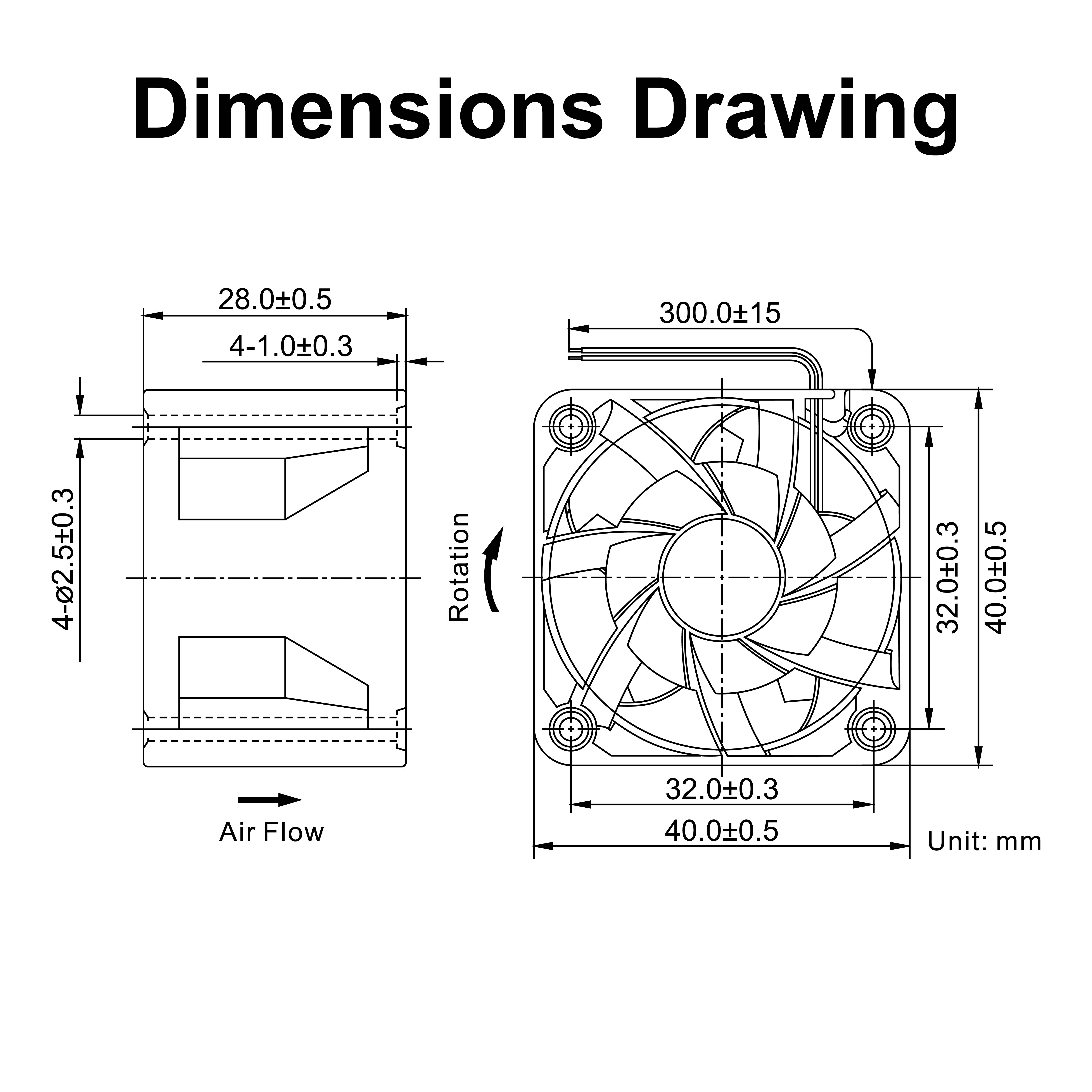 | mm | VDC | VDC | A | RPM | CFM | mmH₂O | dBA | g | FG | RD | TC | PWM |