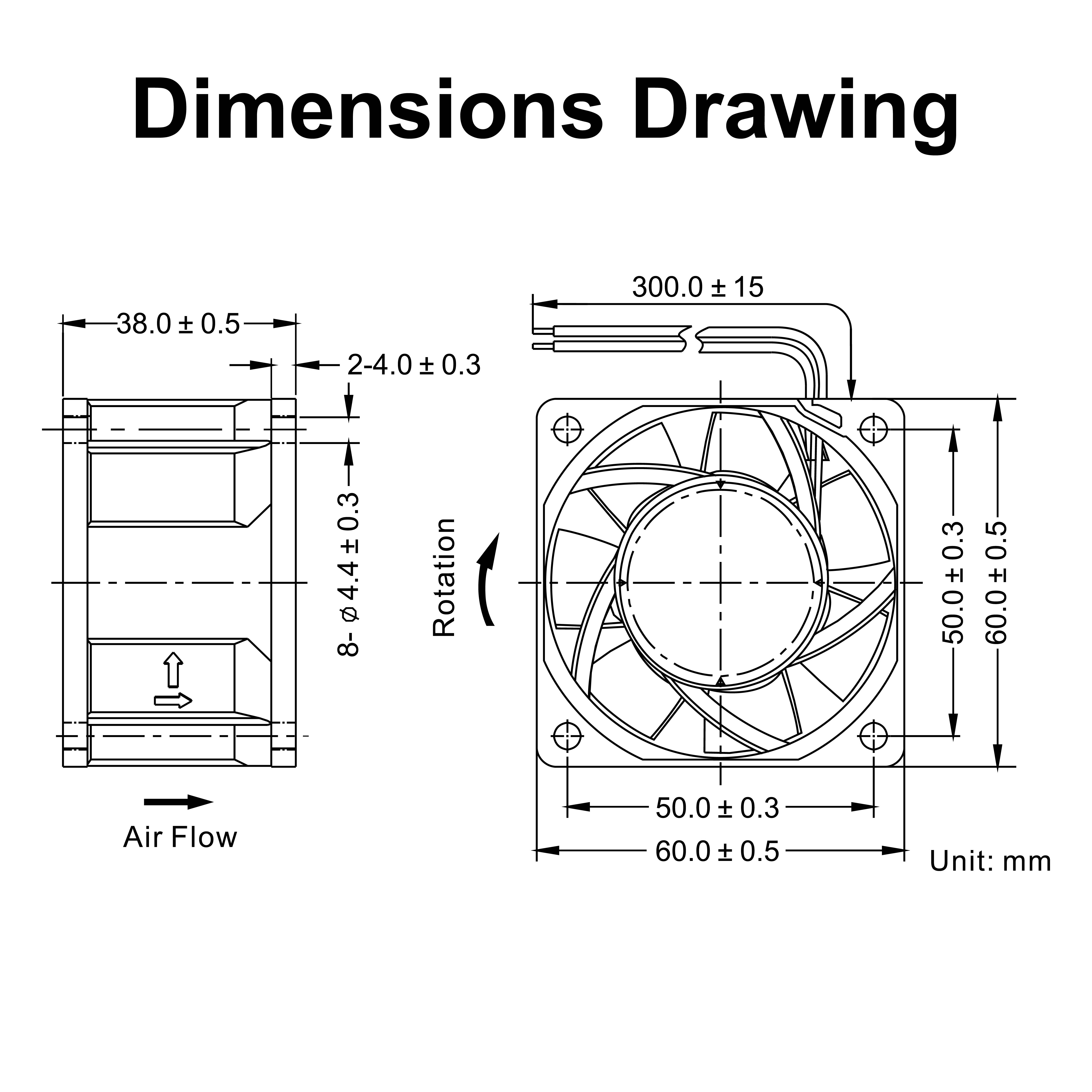 • Frame and Impeller:Thermal Plastic , UL 94V-0