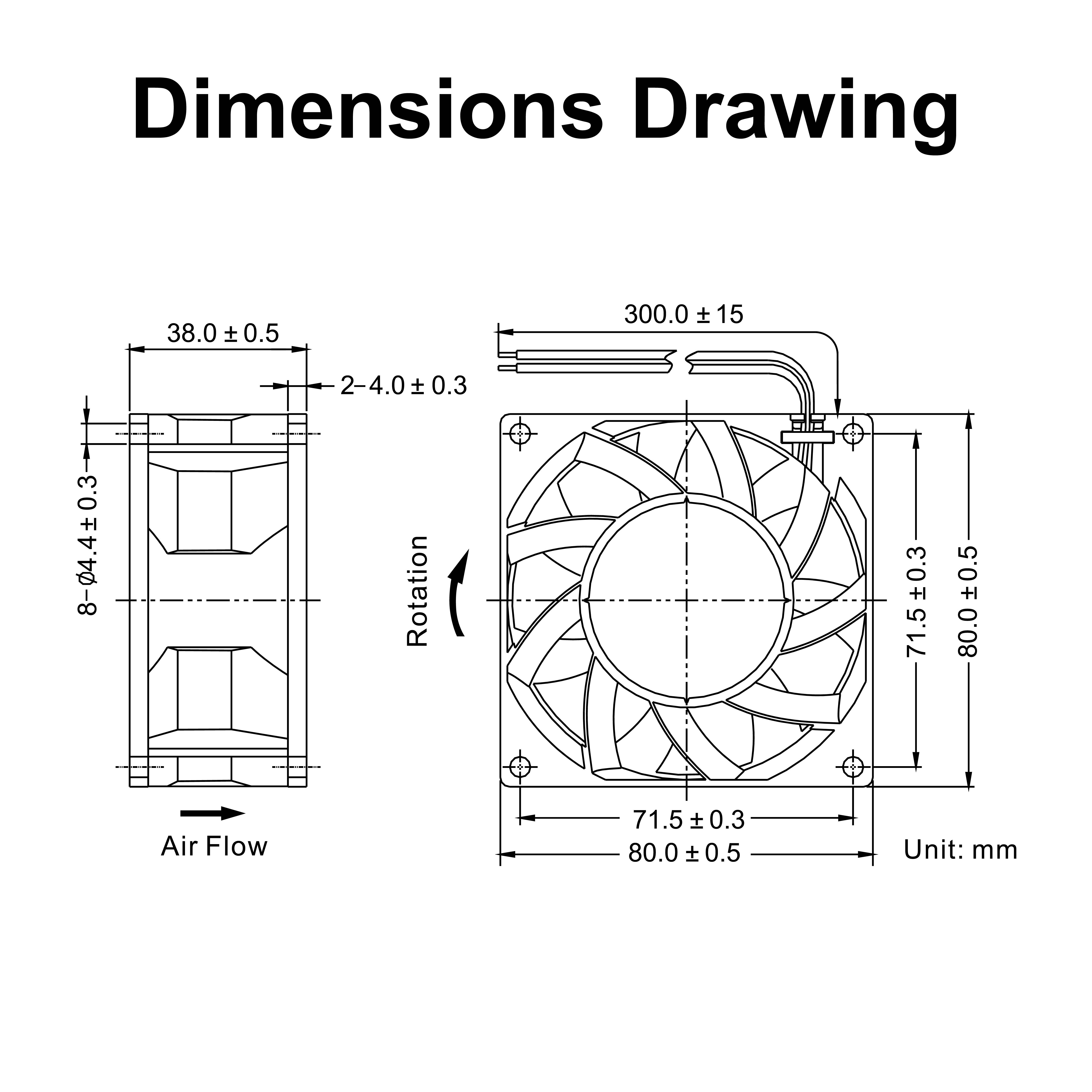 • Frame and Impeller:Thermal Plastic , UL 94V-0