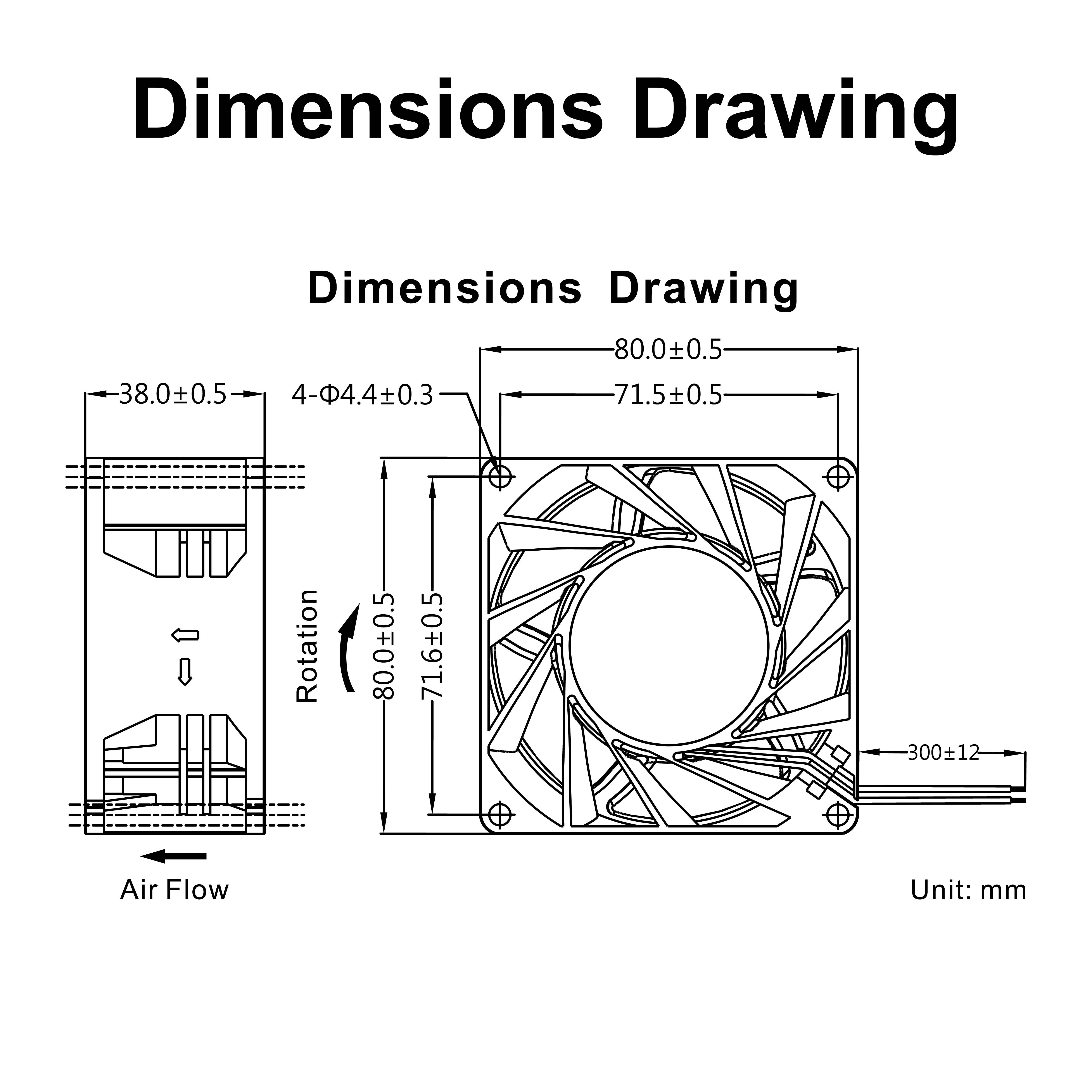 | mm | VDC | VDC | A | RPM | CFM | mmH₂O | dBA | g | FG | RD | TC | PWM |