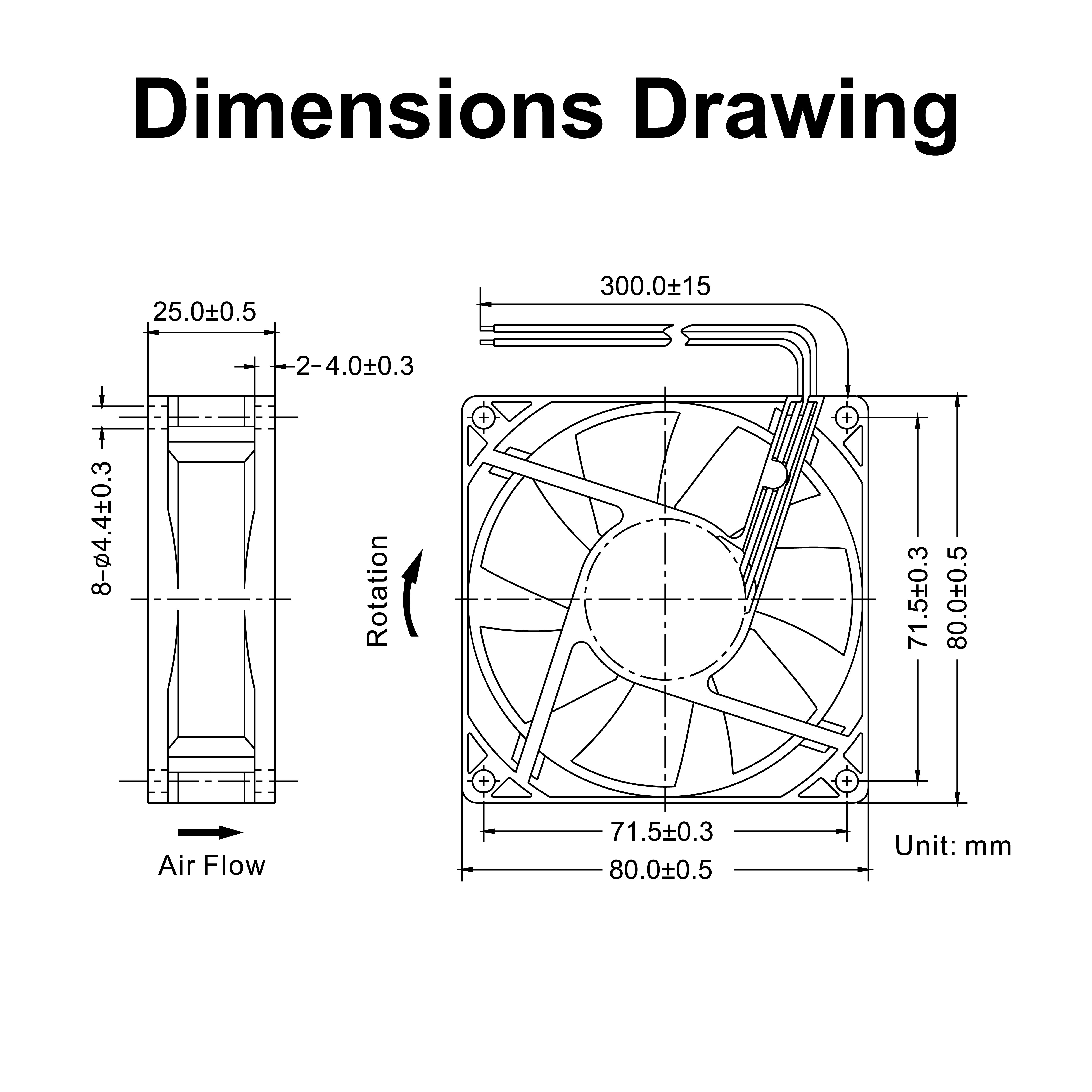 • Frame and Impeller:Thermal Plastic , UL 94V-0