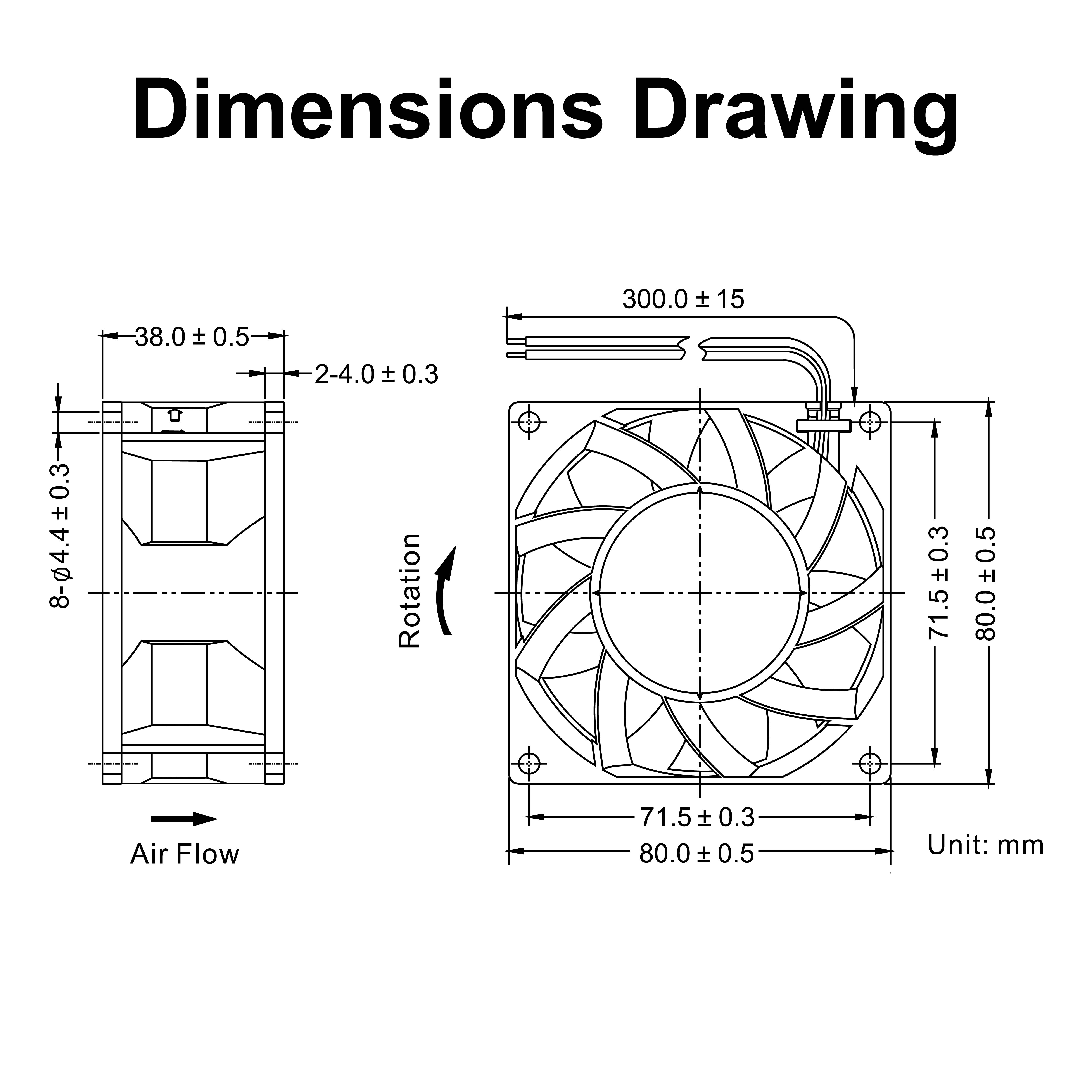 • Frame and Impeller:Thermal Plastic , UL 94V-0